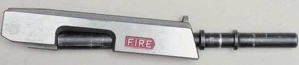 Еще одним любопытным элементом было написанное в передней части затвора с правой стороны слово «FIRE» — когда затвор находился в крайнем заднем положении (т.е. оружие было поставлено на боевой взвод), это слово было видно в отверстие для экстракции гильз.