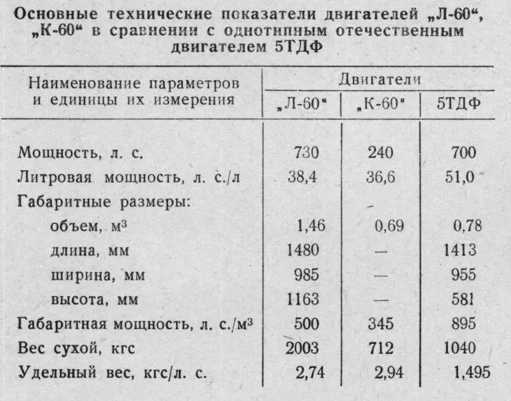 Если в целом конструкции изделий «Л-60» и «К-60» не могут быть признаны прогрессивными, так как они запроектированы для более легких условий эксплуатации, чем двигатель 5ТДФ, и имеют значительно меньшие литровые мощности, то отдельные конструктивные решения, принятые в этих изделиях, заслуживают подробного изучения и после тщательной всесторонней проверки и испытаний должны найти применение в конструкции и технологии производства двигателя 5ТДФ с целью улучшения его технологичности, снижения трудоёмкости и себестоимости.