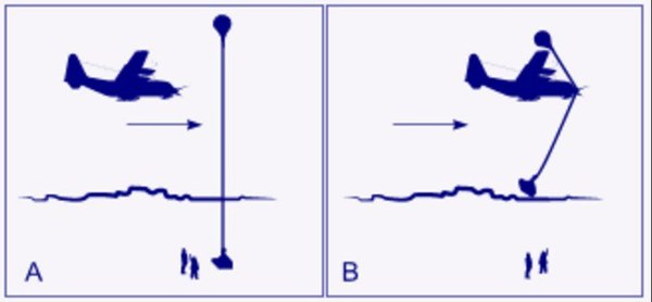 Принцип систем заключался в том, что сначала разведчику, ожидавшему эвакуации, с пролетающего самолёта сбрасывали металлический контейнер весом 150 кг. В нём находился тёплый комбинезон и специальная «обвязка», которые разведчику предстояло надеть на себя, баллон с гелием, мини-аэростат, надуваемый этим гелием, и 150 м. нейлоновый шнур. Один конец шнура крепился к мини-аэростату, а другой — к обвязке.