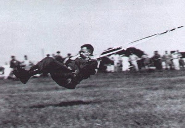 Первым человеком, поднятым на борт самолёта в «условиях, приближенных к боевым», был сержант американской морской пехоты Ливай Вудс. Произошло это 12 августа 1958 г.