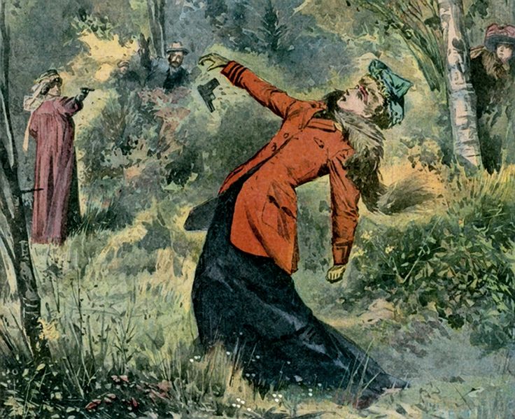 В ход шли не только шпаги, но и пистолеты. На дуэли была застрелена девятнадцатилетняя актриса Мариинского театра Малевская. Причиной поединка стал молодой человек, который был замечен в компании другой, такой же юной особы.