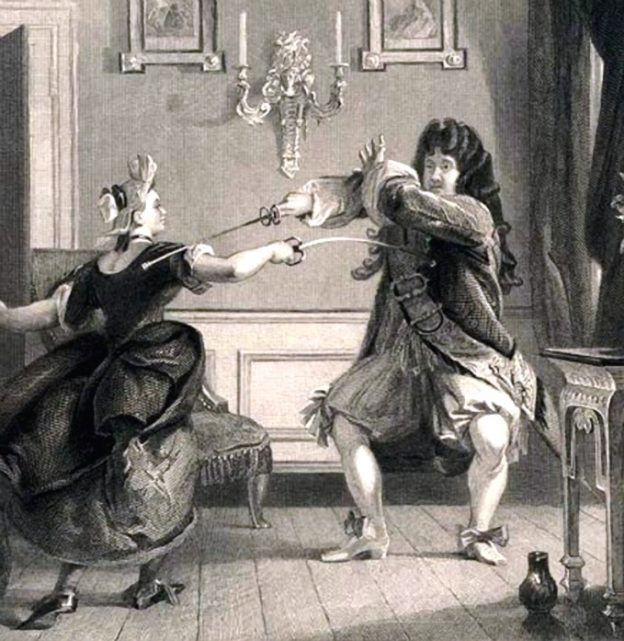 Самой известной европейской дуэлянткой считается мадемуазель Ла Мопен – на ее счету десятки жертв, в числе которых были и мужчины. Она любила ходить в мужском платье, а о ее любовных приключениях складывали легенды.