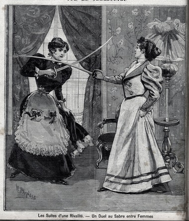 Одним из наиболее известных «дамских» поединков считается дуэль между графиней Кильмансегг и принцессой Меттерних, состоявшаяся в 1892 году. Барышни не сошлись во мнениях по чрезвычайно важному вопросу: как правильно следует декорировать бальный зал. Результатом стал бой на шпагах. Очевидцем событий стала баронесса Любиньска – весьма продвинутая особа, первая женщина-доктор медицины. Она предложила соперницам драться топлесс, дабы не занести инфекцию от одежды в раны.
