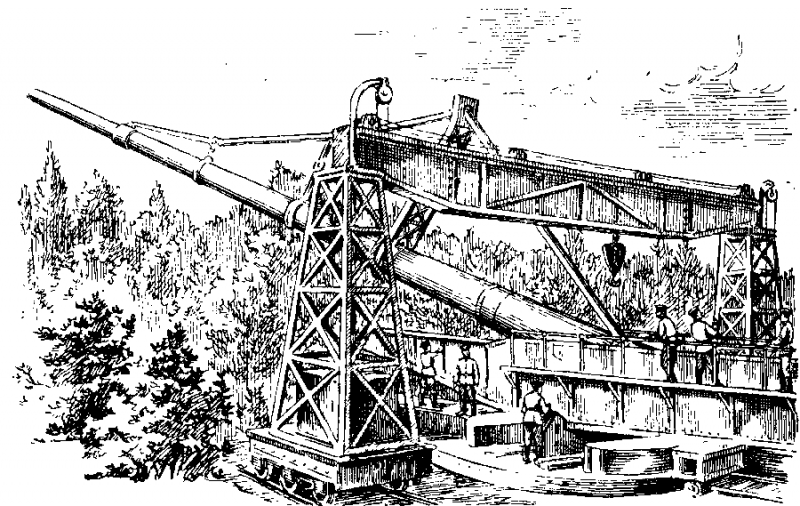 В итоге получился ствол, имевший общую длину до 34 м: один метр затвора позади самого ствола; зарядная камора – 3 м; 18-метровая нарезная часть и гладкоствольная часть длиной 12 м. Ещё одной проблемой была прогиб ствола, от которой в той или иной степени страдали многие тяжелые орудия с длинными стволами. Британские тяжелые морские орудия, которые имели «проволочную обмотку», были особенно склонны к провисанию, но относительно небольшая длина их ствола не создавали ощутимых проблем с точностью стрельбы. В свою очередь, необычайно длинные и тонкие стволы «парижских пушек» изгибались под собственным весом так сильно, что в районе дульного среза отклонялись на целых 9 см. Пришлось крепить на ствол раму с растяжками(что придавало пушке некое сходство с мостом) для устранения провисания ствола и его выпрямления перед выстрелом. Ну а чтобы точно вымерить параметры натяжения, на казённой части был закреплён… телескоп, а на самом стволе последовательно несколько дисков из матового стекла с центральным перекрестием. При правильном натяжении всех тросов эти перекрестия должны были совпадать!