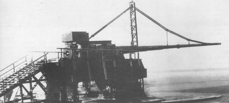 Все операции, такие как перемещение лафета, опускание и подъём ствола, выполнялись вручную – десятки человек управляли лебёдками и кранами. Правда, относительно небольшой вес снаряда приводил к тому, что отдача была фактически меньше, чем у 38-сантиметровых орудий, а звук и ударная волна на земле также уменьшились из-за того, что дульный срез находился очень высоко.