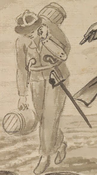 Абордажную саблю, которой были вооружены моряки на кораблях и судах, можно увидеть на фрагменте рисунка Габриэля Брея, который он нарисовал в 1774 году во время путешествия на фрегате «Паллас» в Африку.