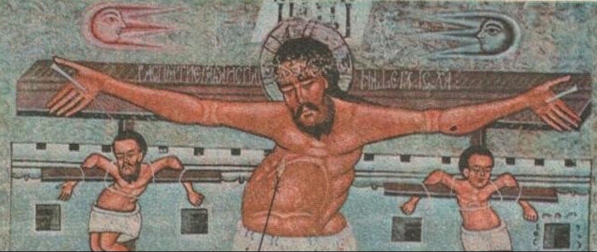 У религиозной церковной живописи есть своя символика, свой «язык». Изображать «что попало» – это святотатство, преступление! Что же могло настолько поразить воображение средневекового иконописца, что он добавил к главной святыне христиан – Распятию – такие странные детали, о которых к тому же средневековый художник не мог знать? Посадочные или габаритные огни на корпусе. Острый нос, характерный для сверхзвуковых самолётов. Положение рук пилота во время управления летательным аппаратом…