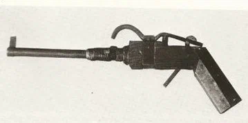 Примитивная конструкция в виде гладкоствольного дульнозарядного пистолета с длинной ствола 200-250 мм, оборудованные S-образным курком и простейшим спусковым механизмом, в качестве воспламенителя мог использоваться капсюль или фитиль. Ложа из деревянной грубо обработанной болванки. Прицела нет, но есть крупная мушка. Для стрельбы должны были использоваться обрезки свинцовых прутков диаметром 13мм. и 3 грамма дымного пороха.