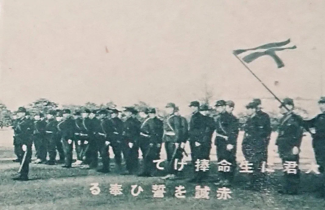 Примечание: 23 июня 1945 года был обнародован и введен в действие «Закон о добровольческой боевой службе». На основе «Национального добровольного корпуса» создается «Национальный добровольческий боевой корпус» Кокумин-Гию-СэнтоТай (国民義勇戦闘隊) объединив в своих рядах мужчин в возрасте от 15 до 60 лет и женщин в возрасте от 17 до 40 лет. Теперь гражданские лица организовались в отряды для боевых действий в соответствии с приказами командования армии. Униформа отсутствовала, и было решено использовать различные эмблемы и нарукавные повязки с указанием предписанных районов сбора или организаций.