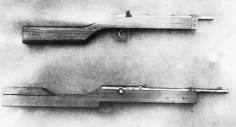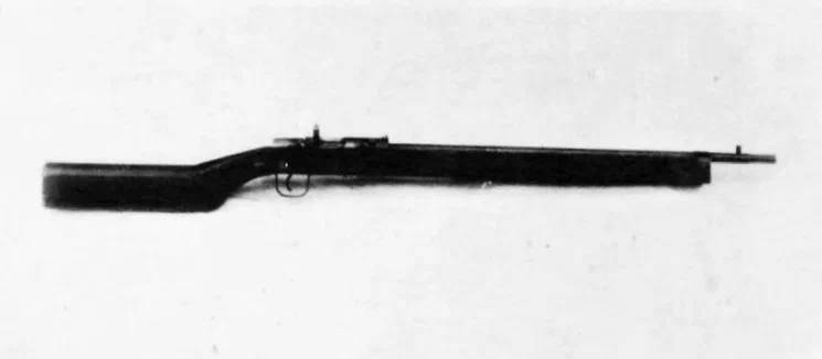 Представляют собой карабины с длинной ненарезного ствола 450-500 мм, оборудованные затвором запираемым прямоугольным выступом на окно ствольной коробки, без выбрасывателя. Ложа из деревянной болванки. Прицел постоянный в виде целика с прорезью на 100 м. При стрельбе деформация опорных поверхностей начиналась с первых выстрелов. Опасна в первую очередь для стрелка. Серийно не производилась.