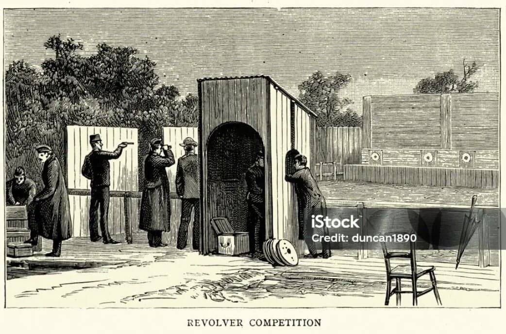 участник мог стрелять только одной рукой без дополнительной опоры; мишени показывались 3 секунды, за это время стрелок должен был поднять оружие со стола, прицелиться и выстрелить;