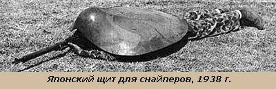 Японцы при осаде Порт-Артура применяли британскую разработку. Эти щиты имели размер 1×0,5 м и обладали достаточной толщиной, чтобы выстоять против винтовочной пули. Правда, весило каждое такое приспособление около 20 кг, а потому бежать с ними в атаку было крайне затруднительно.
