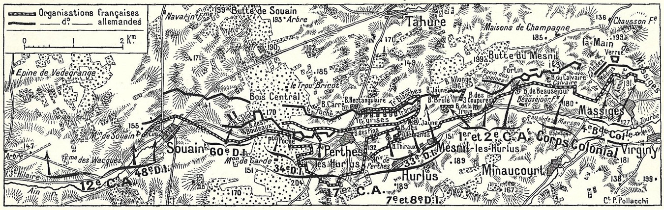 Волны французской пехоты бились о нее в течение месяца, Лангль де Кари непрерывно бросал в бой резервы, но его солдатам ценой неимоверных усилий удалось продвинуться лишь на 300-500 метров, захватив две передовые линии окопов. До главной полосы немецких полевых укреплений они даже не дошли. А плата за этот ничтожный успех была чудовищной. 4-я армия, включая подкрепления, потеряла за февраль более 93 тысяч человек убитыми, ранеными и пропавшими без вести. Немецкие потери составляли 46 тысяч, из них безвозвратно — около 10 тысяч.