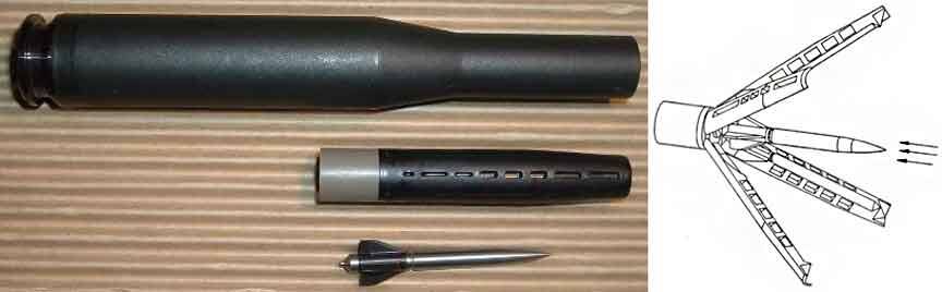 Калибр данного оружия 15,2 миллиметра, диаметр самой стрелы всего 5,5 миллиметров. Сама стрела изготавливается из карбида вольфрама и имеет массу 30 грамм. Начальная скорость стрелы составляет 1450 метров в секунду. Чтобы оценить всю прелесть такого боеприпаса достаточно сказать, что на дистанции в 1000 метров стрела с легкостью пробивает 40 миллиметров стальной гомогенной брони. Разброс при стрельбе из данного оружия на ту же 1000 метров может достигать 800 миллиметров.