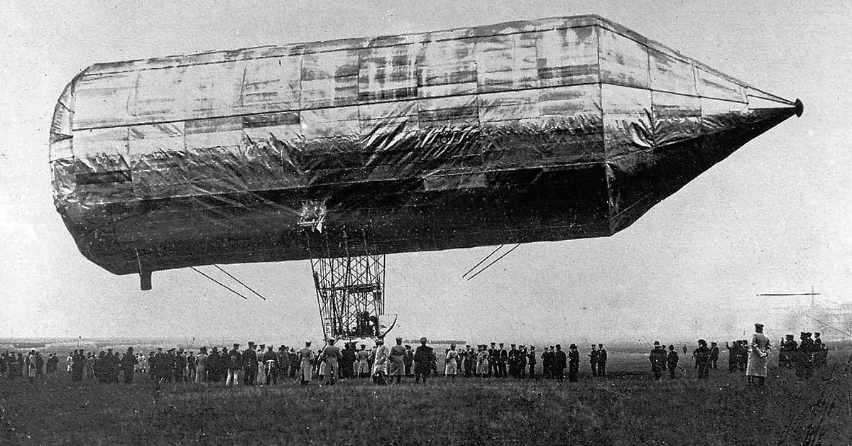 А Цеппелин, о чем мало кто знает, купил патент у вдовы изобретателя и через три года построил свой дирижабль, внеся в его конструкцию существенные изменения. В частности, он значительно увеличил длину баллона и заменил металлическую обшивку полотном.