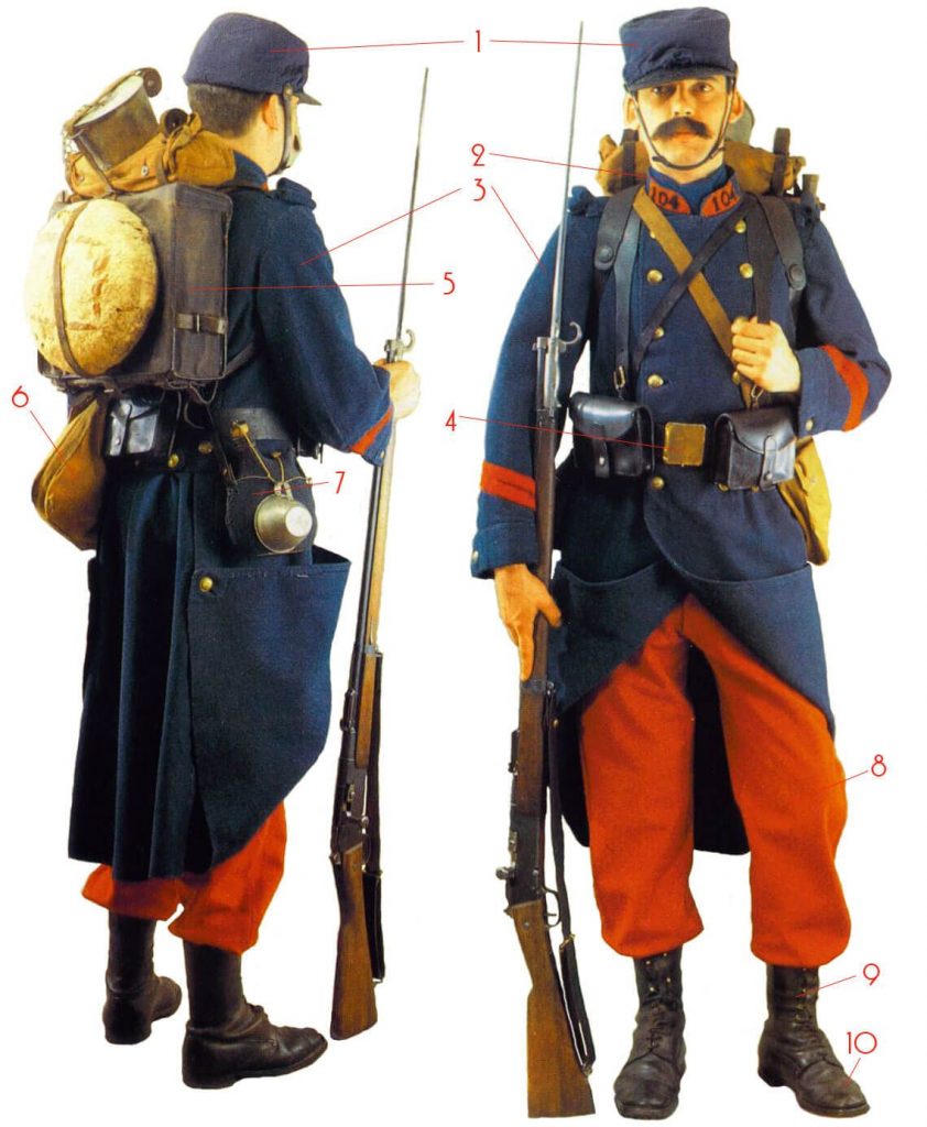 Одноцветное обмундирование хоть и давало определенный маскирующий эффект, но в отличие от современных камуфляжных рисунков, не искажало контуров солдата. Поэтому уже в начале Первой мировой войны стали появляться очень интересные модели «деформирующих» камуфляжей. Возможно, читатель будет удивлен, но первые прототипы камуфляжей были созданы во Франции, стране, армия которой вступила в войну имея наиболее яркую униформу. Напомним, что в начале Первой мировой войны французские солдаты еще носили темно-синие кители(шинели) и знаменитые красные штаны «Le Pantalon Rouge, c’est la France!». Впервые они появились во французской армии в 1830 году и находились на снабжении до 1915 года, пока их не заменили на менее броские.