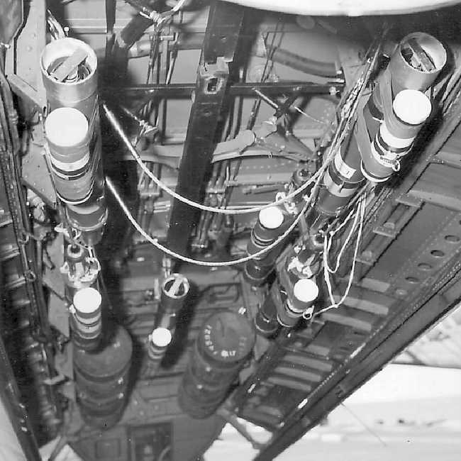 На американских самолетах использовали держатели с пятью секциями, куда помещали и маркеры, и буи. Однако с маркерами получалась та же «история», что и с обычными «глубинками»: сброс с ящичных держателей запаздывал. И тогда применили систему VAR: маркерные бомбы получили тормозной реактивный двигатель, а пуск производился с трубчатых направляющих, установленных под углом вниз в кабине стрелка-оператора, который мог перезарядить установку в полете. Установка была связана с MAD и «ретромаркер» запускался одновременно с «ретробомбами».