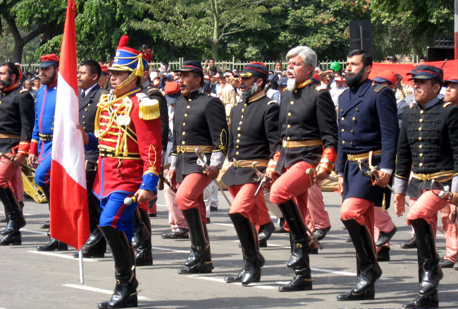 21.Костюмированное шествие в столице Перу, посвященное годовщине битвы при Арике. Его участники не только одеты в старинную форму, но и загримированы под героев той битвы. В частности, мужчина в седом парике изображает полковника Болоньезе.