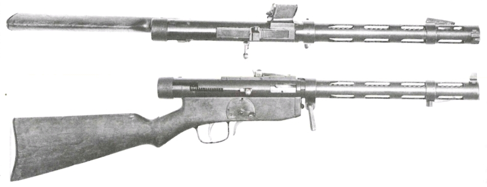 В 1920-1921 годах, когда Аймо Лахти служил мастером-оружейником в гражданской гвардии Риихимяки, он смог познакомиться с пистолетом пулемётом Bergmann MP 18(сконструированном Хуго Шмайссером). Будучи молодым человеком, который проявлял интерес к стрелковому оружию, он заметил, что в конструкции есть потенциал для улучшения, и был уверен, что сможет спроектировать ещё более эффективный пистолет пулемёт.