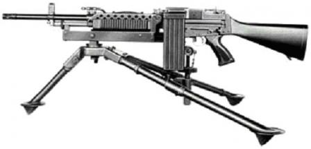 - Ручной пулемёт с ленточным питанием (ХМ207).