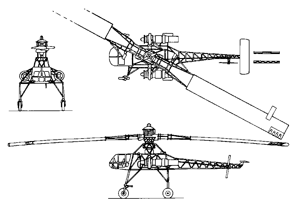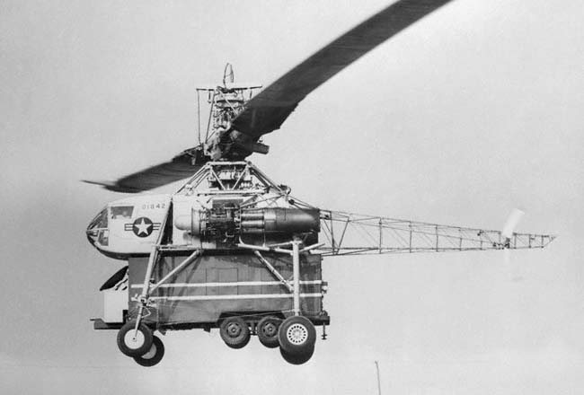 К концу весны этого же года страницы иностранных журналов обошли фотографии 24-тонного вертолета Hughes ХН-17, оснащенного несущим винтом диаметром 39.6м и двумя турбореактивными двигателями General Electric J35, которые служили, по факту, нагнетателями воздуха в камеры сгорания на законцовках лопастей. Для привода ротора воздух подавался от компрессоров турбореактивных двигателей к камерам сгорания на концах лопастей, где в него впрыскивалось топливо и тут же поджигалось.