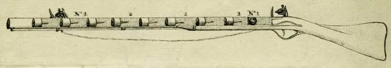 Важной особенностью многоствольного «мушкета» была система трубок вблизи замка, объединявшая их. По этой системе пламя из одного ствола могло пройти в соседние и поджечь в них порох. Благодаря этому первый выстрел производился при помощи всего одного кремнёвого замка. Далее происходила серия залпов, пока стволы не опустошались.