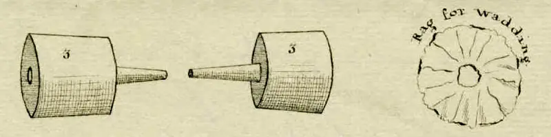 Оригинальная пуля имела цилиндрическую форму с ровными торцами. На донце пули находился тонкий хвостовик. По оси пули и хвостовика имелось сквозное отверстие. Такую пулю предлагалось использовать вместе с тканевым пыжом в виде диска с отверстием.