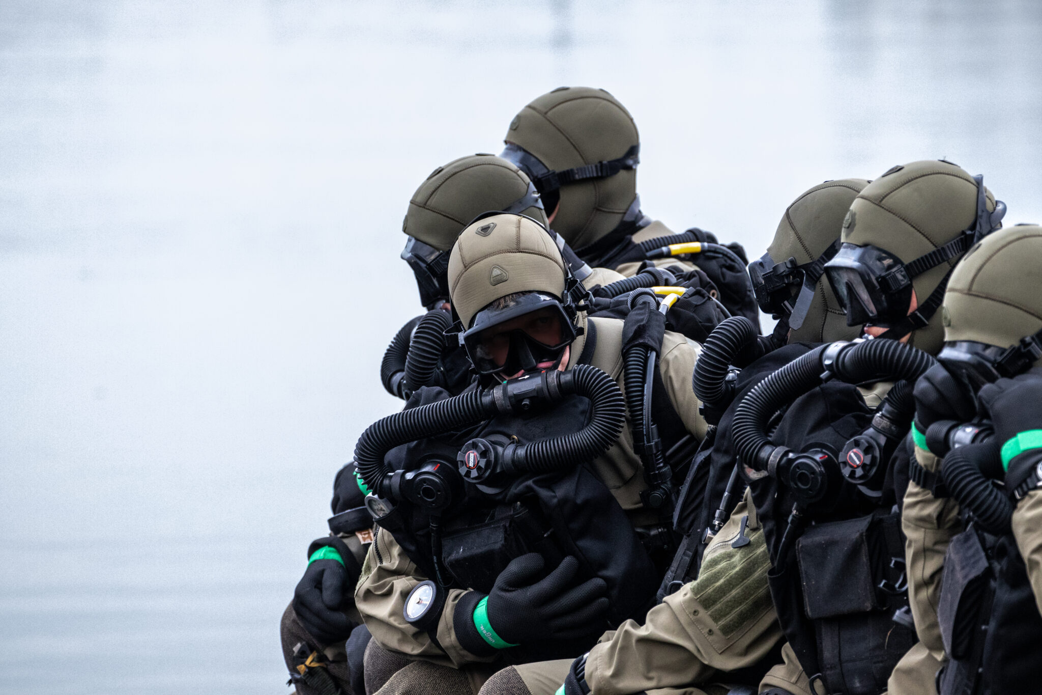 Для спусков под воду боевые пловцы используют аппараты замкнутого цикла «Drаger LAR-V», а также водолазные костюмы сухого типа «Trelleborg Viking Pro 1000».