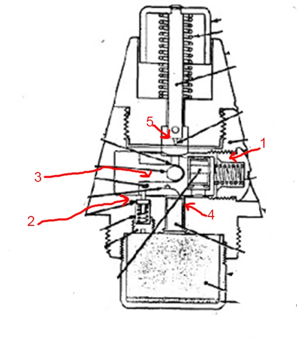 На приведенной выше схеме под номером 3 обозначен ползунок, который не дает бойку (5) добраться до капсюля (4). Ползунок блокируется штифтом на пружине (2), а когда штифт убран, ползунок отодвинет пружина 1, убрав, тем самым, препятствие между бойком и капсюлем. Все, что для этого нужно — это сжать пружину 2, тогда взрыватель придет в боевое положение.