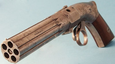 В 1837 году американский предприниматель и оружейник Этан Аллен (Ethan Allen) получил патент на разработанный им «pepperbox» (пеппербокс) с капсюльным замком. Буквально слово «pepperbox» переводится с английского языка, как «ящик с перцем», или «перечница». Это оружие оказалось довольно удачным и многие оружейные фирмы стали его копировать.
