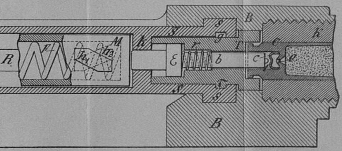 «пороховые газы отводятся через дно патронника из канала ствола в период самых крупных и резких колебаний величины давления их. Отступления в диаметре канальца в дне патронника, назначенного для пропуска пороховых газов, могут дать независимо от всего вышесказанного значительные колебания в величине давления пороховых газов на колпачок капсюля».