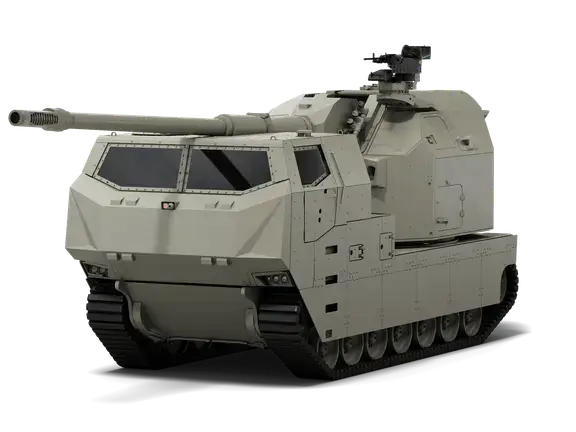 В лобовой части модуля помещена качающаяся установка с 155-мм гаубицей разработки Rheinmetall. Орудие имеет ствол длиной 52 клб и оснащено развитым дульным тормозом. Предусмотрен автомат заряжания с механизированной укладкой на 30 выстрелов. Все операции по подготовке к выстрелу осуществляются автоматически, что позволяет получить высокую скорострельность.