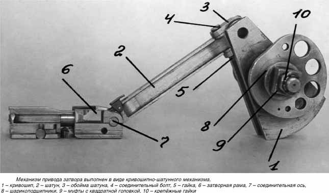 - работа автоматики отличается своей плавностью, так как отсутствуют удары в крайних положениях (заднем и переднем), а удары в звеньях автоматики, связанные с производством отпирания и запирания, практически не вызывают скачков скорости;