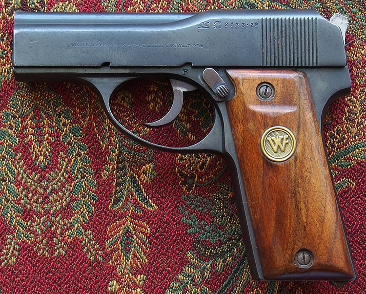 На эбонитовых накладках рукояти того времени использовалось два варианта маркировки — как логотип фирмы (стилизованное WWF), так и англоязычное «Little Tom». Особой долговечностью они не отличались, так что на многих сохранившихся 6,35-мм пистолетах Wiener Waffenfabrik они уже давно заменены деревянными.