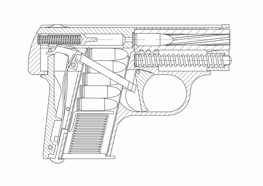Давайте для начала вспомним конструкцию каноничного и многократно скопировавшегося «Браунинга» модели 1906 года.