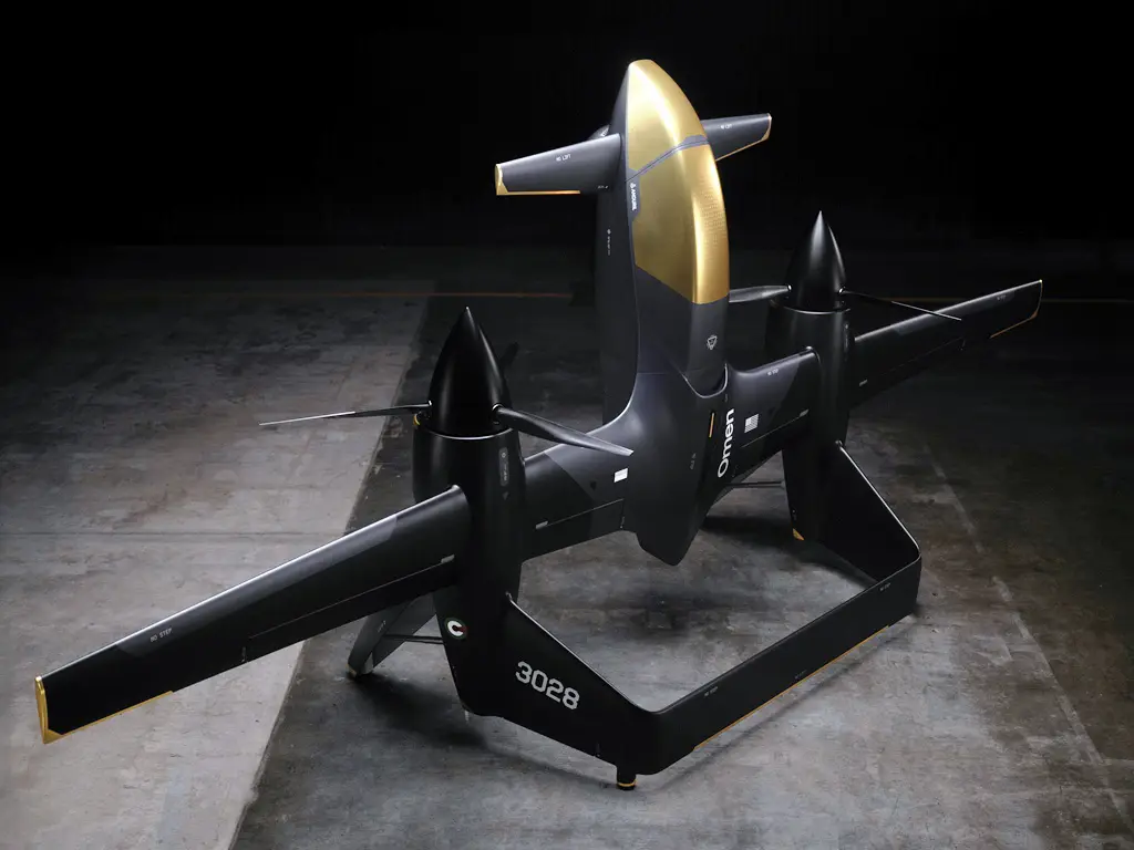 Omen получит гибридную силовую установку. В хвосте фюзеляжа помещается основной двигатель с генератором. Тип такого мотора не уточняется. Воздухозаборник указывает на возможность использования газотурбинного двигателя. В гондолах на крыле будут находиться два электромотора достаточной для вертикального взлета мощности. Им предстоит вращать трёхлопастные винты.