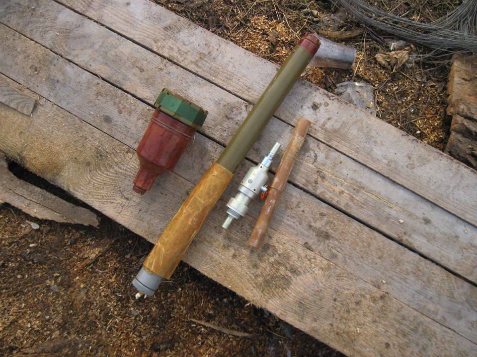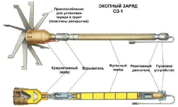 Окопный заряд ОЗ-1 состоит из четырех узлов, собираемых в одно целое перед применением: