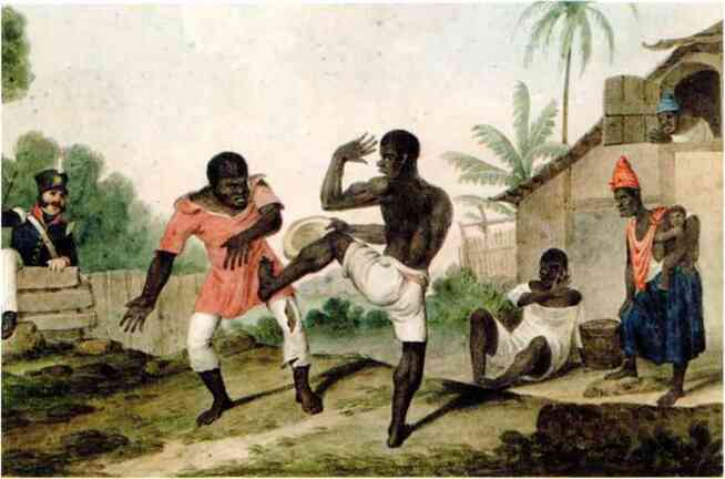 Мысленно вложите бритву в руки пляшущим капоэйристам, и все их пируэты, прыжки и уклоны обретут смысл. Банды капоэйристов контролировали улицы бедных кварталов бразильских городов и нередко устраивали побоища. К примеру, в 1831 году в окрестностях Сан-Хосе две огромные банды в количестве двухсот человек сцепились, полосуя друг друга ножами и бритвами. Когда прибыла полиция, они вместе напали на нее и позже продолжили свою драку уже в другом месте.