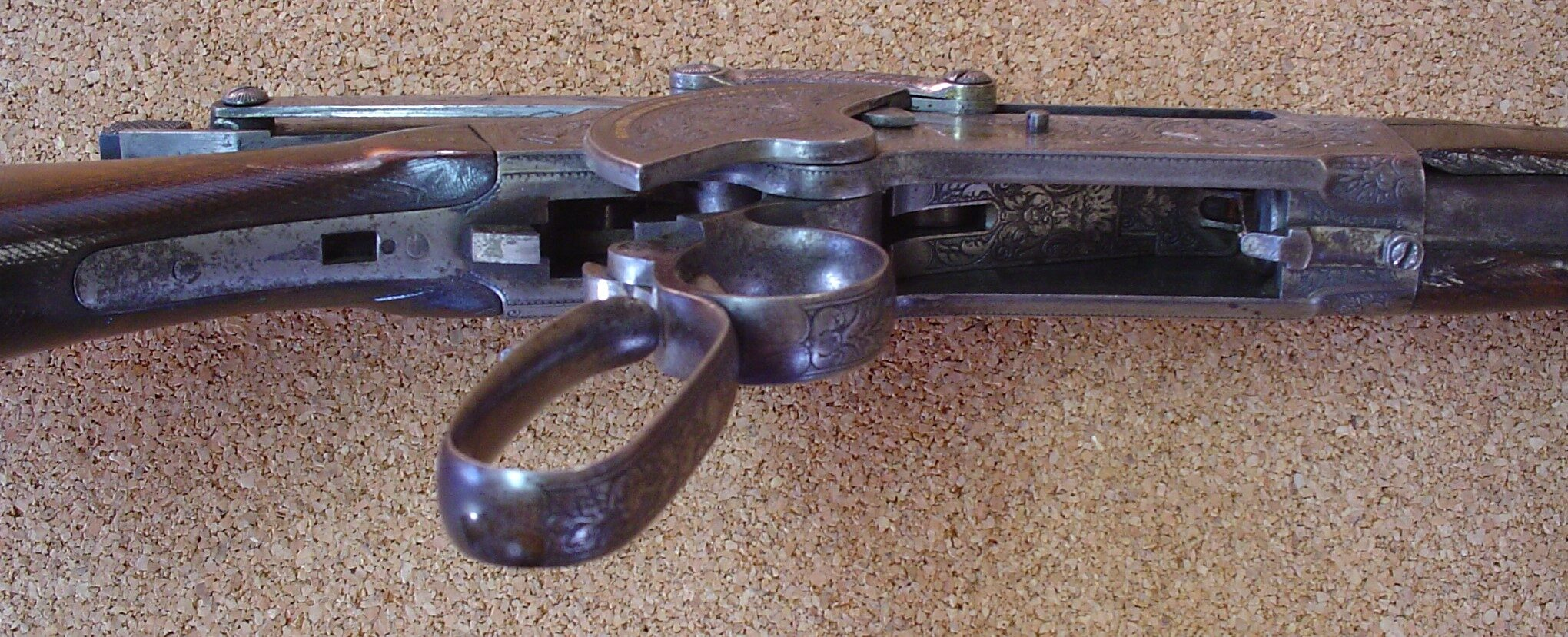 Лоток ружья кинематически связан со скобой Генри, поднимая патрон, выпущенный из магазина, в конце хода скобы.