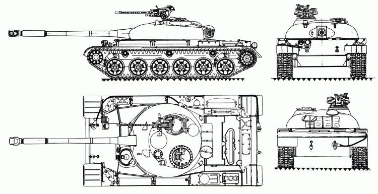 Слева на крыше башни устанавливалась командирская башенка, имеющая ту же конструкцию, что и башенка на Т-54. Справа на крыше башни – основание люка заряжающего. Крышка люка заряжающего и турель зенитной пулеметной установки вращались на шариковой опоре.