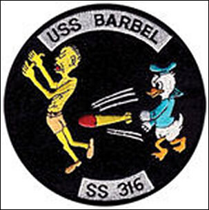 USS Barbel (SS-316) вошла в строй 3 апреля 1944 года. Совершила три боевых похода, в каждом имела победы, хотя число их различается в разных источниках. В четвёртом походе последний раз вышла на связь 3 февраля 1945 года, причём её командир лейтенант-коммандер Конде Лерой Раге, жаловался, «что не продохнуть от вражеской авиации». Уже после войны в японских документах найден отчёт о её гибели. Японский самолёт сбросил всего две бомбы на лодку, находившуюся в надводном положении. Одна из бомб попала прямо в рубку. Не спасся никто, лодка стала 40-й, погибшей за войну, а её командир — самым молодым погибшим на боевом посту командиром американской ПЛ. Эмблема лодки: