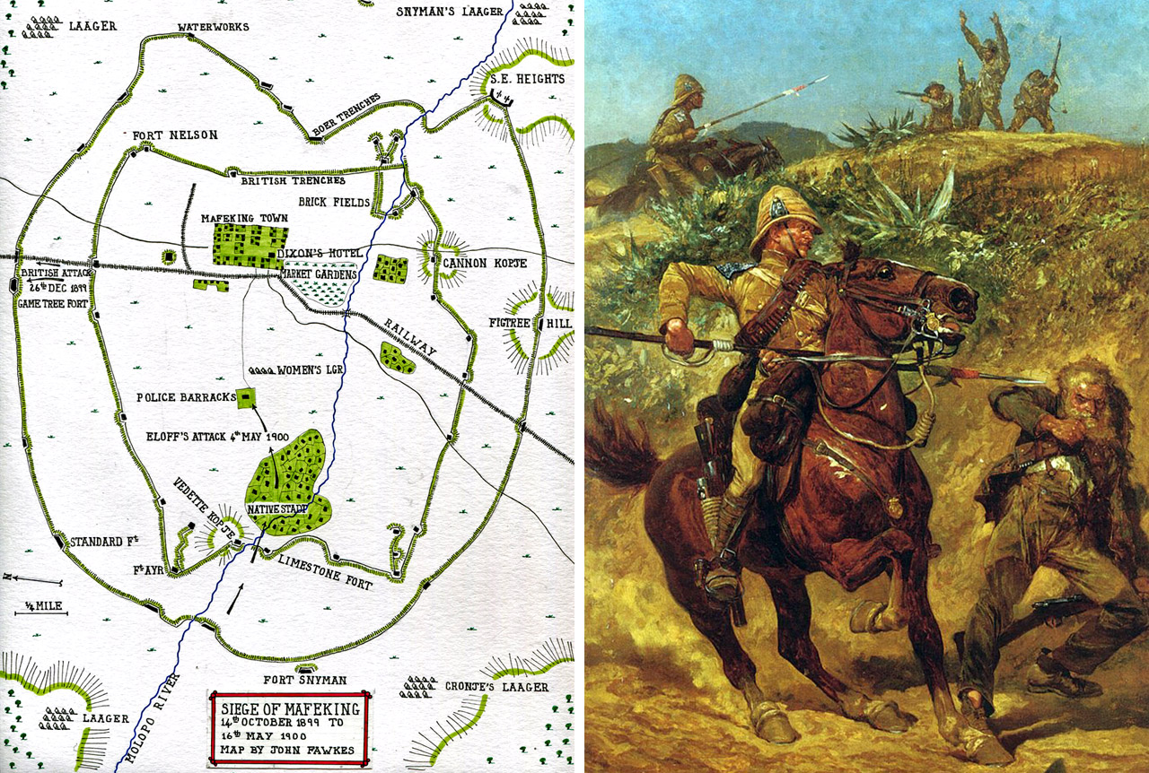 14 октября 1899 года, в тот самый день, когда армия буров под руководством генерала Весселса взяла в блокаду английский приграничный город Кимберли, другая часть бурского войска, которой командовал сам главком вооруженных сил Трансвааля генерал Пит Кронье, на другом участке фронта осадила городок Мафекинг.