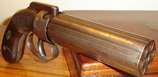 В конце XVIII века появилось новое короткоствольное оружие, получившее название «pepperbox». Буквально слово «pepperbox» переводится с английского языка, как «ящик с перцем», или «перечница». Pepperbox представлял собой короткоствольное дульнозарядное многоствольное оружие с кремневым замком. В 1780-1800 годах пепербоксы с кремневым замком и вращающимся вручную блоком стволов появились в Великобритании и США. Однако конструктивное несовершенство мешало их широкому применению.