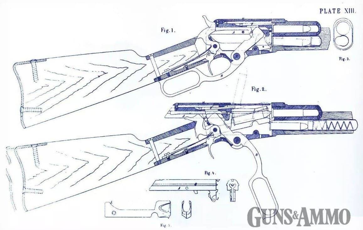 Как известно, первая винтовка с рычажным механизмом перезарядки была представлена «почтенной публике» в 1860 году — винтовка Henry под патрон .44 Henry кольцевого воспламенения. Оружие имело надежный механизм перезаряжания и магазин, рассчитанный на 17 патронов, однако сами патроны были довольно слабыми для винтовки.