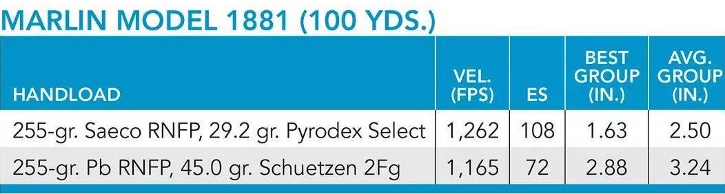 Дэйв Эмори сам снарядил патроны, однако, получилось очень похоже на стандартный патрон .38-55, который согласно каталогу 1899 года обеспечивал пуле весом 255 гран (17 г) скорость 1285 фут/с (392 м/с) — патроны, снаряженные им давали пулям весом 255 гран скорости 1262 ф/с и 1165 ф/с (385 м/с и 355 м/с).