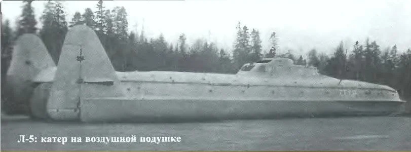 Катер Л-5 массой около 8.5 тонн (понятие водоизмещения тут довольно спорно применимо, хотя он, конечно, мог держаться на воде и в водоизмещающем режиме), оснащался двумя радиальными двигателями воздушного охлаждения мощностью по 850л.с., размещенными в передней и задней части судна, которые приводили в действие пропеллеры нагнетавшие воздух в пространство между скегами. Перемещение катера по горизонтали осуществлялось за счет поворотных жалюзи, размещенных под нагнетателями. Скорость катера была рекордной и по сегодняшним меркам, на контрольных испытаниях в 1937 году Л-5 показал на воде скорость 73 узла (свыше 133 км/ч).