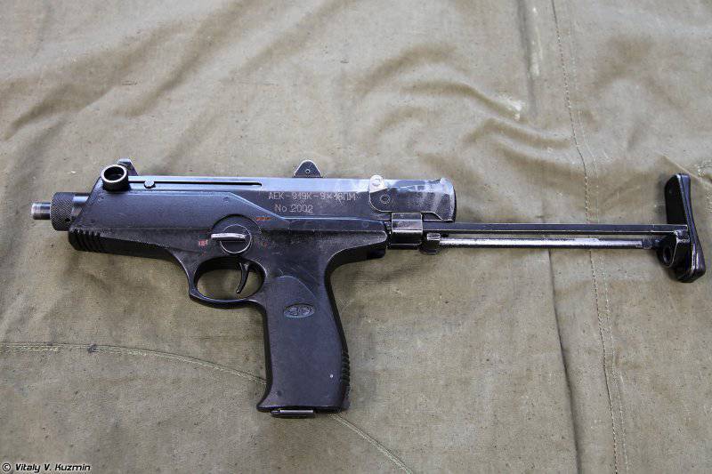 К пистолету-пулемету АЕК-919К «Каштан» возможно крепление коллиматороного прицела и лазерного целеуказателя, а также глушителя. Предлагаемый производителем АЕК-919К коллиматорный прицел имеет довольно крупные, по современным меркам, габариты, что затрудняет скрытое ношение оружия. Однако на АЕК-919К может быть установлен и любой другой современный коллиматорный прицел. Недостатком АЕК-919К является место размещения рычага переводчика-предохранителя, которое не позволяет выключить предохранитель одной рукой без изменения положения оружия. Модификации: АЕК-919 — прототип под патрон 9х18 мм ПМ, выпущенный небольшой партией. Отличался несколько большей длиной, массой и формой верхней части ствольной коробки; АЕК-918 — созданный в 2000 году опытный образец под отечественные патроны 9×19 мм 7Н21 и 7Н31; АЕК-918в — опытный образец под патрон 9×19 мм Парабеллум с 30-зарядным секторным магазином.
