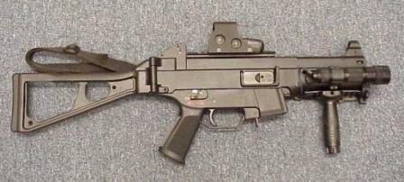Пистолет-пулемет UMP (Universal machinen-pistole универсальный ПП) был создан немецкой фирмой Хеклер-Кох во второй половине 1990х годов в качестве более дешевого и в чем-то более современного дополнения к линейке пистолетов-пулеметов МР5 этой же фирмы. UMP создавался в первую очередь для полицейского рынка США, а потому сперва был выпущен под популярные в США патроны .45АСР и .40SW, и лишь примерно годом позже — под 9 мм Парабеллум. Первые образцы с дополнительным оборудованием появились в 1999 году.