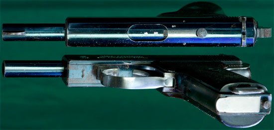 Сцепление ствола и затвора осуществляется посредством прилива в верхней части ствола, входящего в паз в переднем отсеке затвора-кожуха.