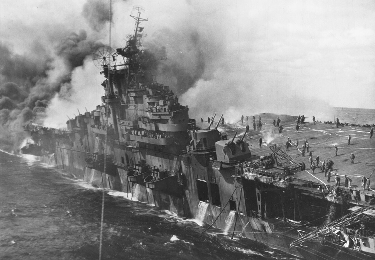 80 лет назад, 19 марта 1945 года, тяжелый авианосец CV-13 «Фрэнклин» стал первым американским авианосцем, который приблизился на 50 морских миль к побережью Японии, чтобы его палубные самолеты могли залетать для нанесения ударов дальше в глубь японской территории. Но наказание за такую наглость последовало незамедлитально. В тот же день из-за тучи вынырнул одинокий пикирующий бомбардировщик D4Y «Суйсэй», почему-то провороненный корабельным радаром.